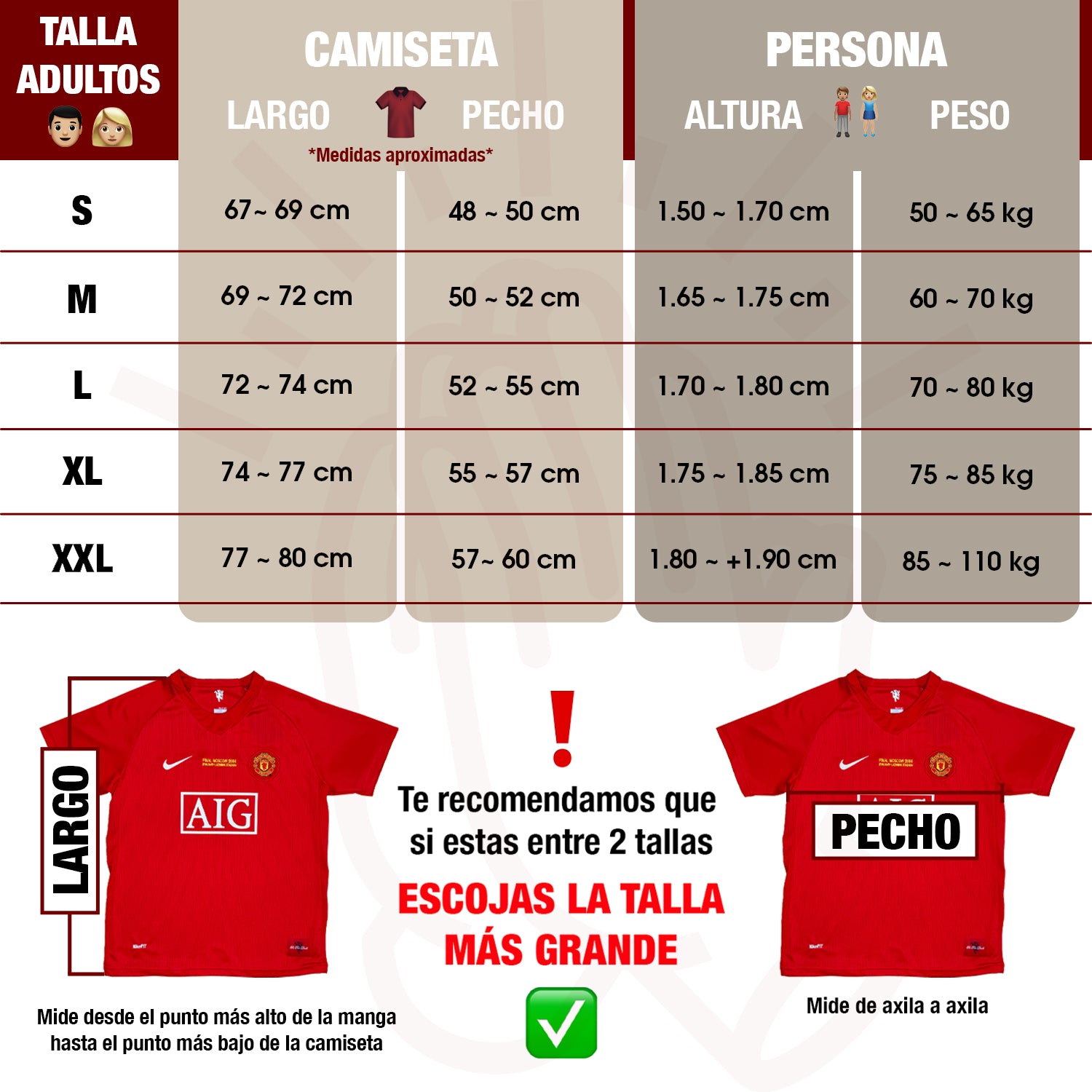 Para ver nuestra guía de tallas de adultos consulta la última imagen de producto o haz clic aquí